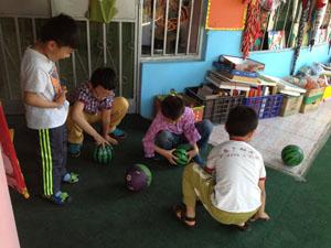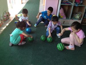 什么东西会转动呢?小小皮球转起来,跑来跑去,小小沙包转起来,我们一起朋友碰一碰,小朋友你们会转皮球吗?想一想还有哪些东西可以转起来呢?看!我们大四班小朋友把皮球玩出了好多花样,你们也来动一动吧……