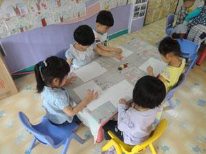 小兔门前的路被雨水冲刷地非常泥泞,小兔不能出来玩很不开心。所以我们小一班的小朋友们决定帮助小兔子把门前的路修好。看我们帮小兔子铺的五彩石头路是不是很漂亮呢。这样,以后小兔子就不怕雨天路不好走了,小兔子就可以像我们一样每天都开开心心的啦。帮助小兔子我们也很开心~~~~