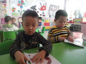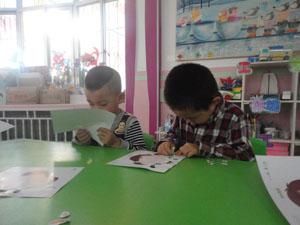 一张张可爱的娃娃笑脸马上就要呈现,我们小二班的小朋友们真的是很能干,先粘粘眼睛,再粘眉毛,嘴巴,哈哈,很快就完成了,太棒了!老师夸我们的动手能力真的是进步非常大。