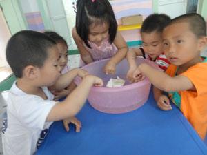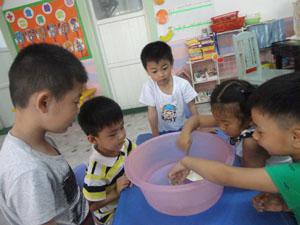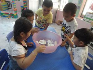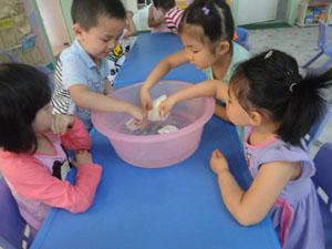 今天我们中三班的小朋友们做了一个有趣的实验,我们将宣纸和防水纸做成的纸花一起放到水里,对比看哪一朵纸花的花瓣会慢慢撑开,哪一朵会沉到水里。我们发现防水纸的花苞慢慢开放了,看我们实验做的多认真啊,快来看看我们开放的纸花吧!