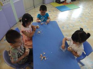多吃有营养的食物才能身体棒棒。今天我们小一班的小朋友学习自己动手剥鸡蛋,这样以后我们就可以不再麻烦爸爸妈妈、爷爷奶奶们每天帮我们剥鸡蛋了。剥鸡蛋也是一门技术活的哦,需要我们先磕一下鸡蛋,然后捏一下皮儿,让鸡蛋皮上出现很多的裂缝,这样我们就可以剥皮儿了。快看我们剥的鸡蛋吧,是不是感觉很干净很好吃的样子呀~~~~
