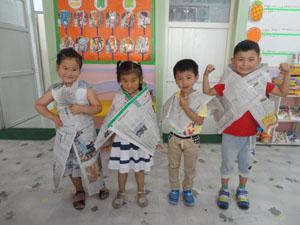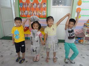 今天我们中三班的小朋友们当起了小小模特,我们利用废旧报纸设计出的时装进行时装表演。小朋友们有的穿着报纸制作成了漂亮的小裙子,有的则穿着帅气的披风,还有的小朋友穿了一个小马甲。看我们的衣服样式多丰富呀,快来跟我们的模特一起走走秀吧!