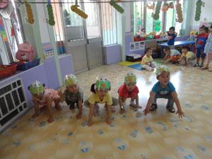 小青蛙是益虫,我们都喜欢小青蛙。所以今天我们小一班的小朋友一起来扮演小青蛙来帮人们捉害虫,保护庄稼。不过我们都还只是一些小青蛙,跳不高,还有好多害虫捉不到,不过没关系,相信我们长大的时候肯定可以捉到很多很多的害虫,你们说对不对?!