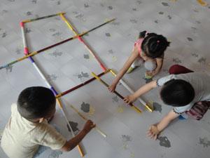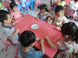 小棒棒,一根根,我用棒棒拼小人,拼个小人立正走,拼个小人跨步走,小四班的小朋友用纸棍拼,用吸管拼,看看谁拼的最漂亮呢,活动不但锻炼了孩子的想象力和动手操作能力,还培养了孩子小组间的合作意识!
