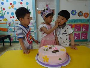 “祝你生日快乐,祝你生日快乐,……”在优美的歌声中,小三班的罗芷晴、李明瞻和王煜辉小朋友迎来了自己四岁的生日,大家一起点蜡烛,唱生日歌,吃蛋糕,小朋友们可开心了!