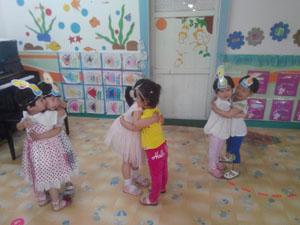 今天,小三班的小朋友学了一首好听的歌曲《小胖鸭子捉迷藏》。小朋友们学唱的可认真了!小朋友们不但可以一起演唱歌曲,并且还一起根据歌词内容创编歌曲的表演动作。瞧!创编较合拍的做鸭走、游水的动作,小鸭子们抱在一起多开心啊!