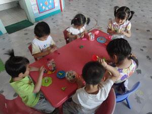 小小橡皮泥真有趣,我们一起来捏泥,捏个圆圈像轮胎,捏个半圆像小船,让幼儿充分发挥自己的想象力,创作自己的作品,还锻炼了手指小肌肉的灵活性!橡皮泥儿真好玩~