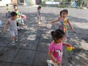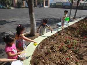 水呀水,是个宝,妈妈用它洗衣服,弟弟用它来洗澡;水呀水,是个宝,它的用处真不少,节约用水记得牢,今天小四班的小朋友一起帮水宝宝来搬家,搬到种植区里,浇灌花花草草!你瞧,我们多棒啊。