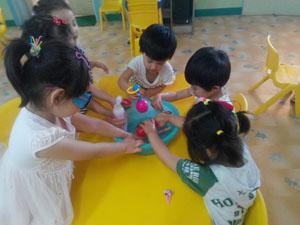 今天,小三班小朋友开展了一节很有意思的科学活动《小鸭游泳》,通过这节课活动,让幼儿发现物品放在水里有的会浮在水面上,有的会沉在水底,增强了幼儿的探究力同时也提高了他们的观察能力。