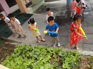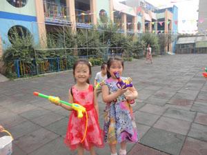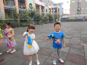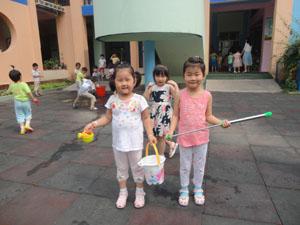 本周主题有趣的水,小朋友们一起玩水,一起给菜园浇地,一起玩水枪,感知了水会流动,会分辨不同的水声,能用点、线、面得组合,表现自己对不同水声的感受,多么有趣的水啊,我们玩得真开心啊!