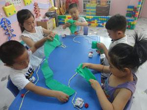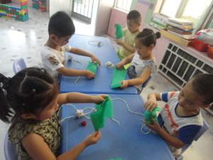 “端午节,真有趣,吃粽子,赛龙舟……”。端午节就要到了,今天我们中三班的小朋友们一起来包粽子,我们用绿色的皱纹纸当粽叶,用白色的纸团当糯米,用红色的皱纹纸当红枣,将米和枣包到粽叶里再用绳扎好,一个粽子就完成了。虽然我们的粽子不能吃,但是看看孩子们高兴的样子不亚于吃到粽子的甜蜜!