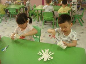 小小剪刀手中拿,小小纸杯变身了,哈哈,我们的小手真呀真能干,瞧,纸杯摇身一变,被我们涂色、修剪后,变成了美丽的太阳花,伙伴们拿着自己亲手做的太阳花,准备送给爸爸妈妈!