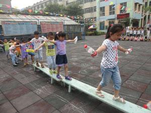 每个小朋友心中都有一座家乡美丽的桥,今天我们中三班的小朋友们玩了一个好玩的游戏——勇敢过桥。我们将平衡木当做独木桥,保持平衡过桥还变换各种办法将物品运过独木桥。小朋友们不怕困难终于安全度过了桥,看我们玩得多开心啊,快跟我们一起玩吧!