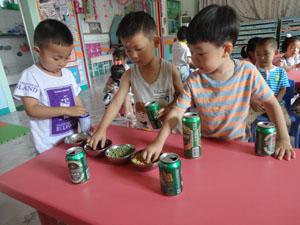 小罐罐真神奇装进沙子,沙沙响;装进树叶,哗哗响;装进豆子,叮叮响,大家一起来演奏,小三和小四班的小朋友制作了会唱歌的罐罐!“一闪一闪亮晶晶,满天都是小星星”我们跟着会哦唱歌的罐罐一起演奏吧! 通过这节活动,进一步让幼儿感知到了不同物品装在罐里发出的声音不同。