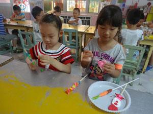 我们的家乡有很多的特色小吃,小朋友们要自己动手制作小吃喽,小朋友们用橡皮泥捏成自己喜爱的小吃,有麻辣串、糖葫芦、里脊串、麻辣烫等,全是小朋友们自己的创意,你们都是最棒的厨师。