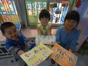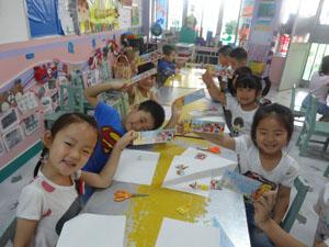今天我们准备了漂亮的卡通纸片,小朋友们都特别喜欢,小朋友就把彩色卡通图片剪成各种图形,将图形进行拼摆、黏贴,组成另外的一幅幅美丽的创意画,小朋友们真是太棒了。这一幅幅的作品是孩子创作的画中画!