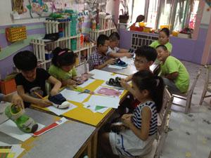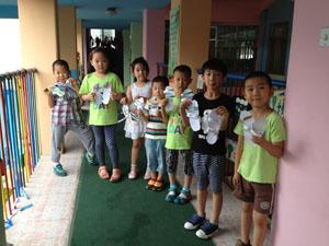 夏天到了,小朋友们都穿上了好看的拖鞋,小朋友,你的拖鞋是什么样子的?漂亮吗?今天我们大四班小朋友就一起动手来设计属于我们的独一无二的拖鞋,看!脱下我们现在的鞋子当鞋模,剪剪粘粘制作完毕!我们设计的怎么样呀……