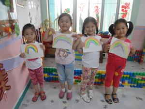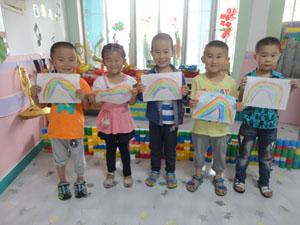 “天空中,一道道,彩虹七色光……”。今天我们中三班的小朋友们学习用红、橙、黄、绿、蓝、靛、紫七种颜色画彩虹,雨过天晴,一道道弯弯的彩虹挂在天空上仿佛我们的心情一样绚丽明亮。看我们的彩虹多漂亮啊,快来欣赏我们的彩虹展吧!