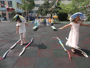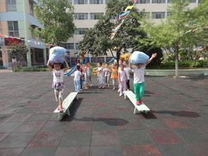 下雨了,下雨了,在郊外玩耍的小动物为了不被雨水淋湿,头上要顶着遮雨工具走过独木桥才嗯才能到家。今天我们中三班的小朋友们就来玩了这样一个好玩的游戏,我们将枕头当遮雨的工具顶在头上走过独木桥。看我们玩得多开心啊,快来一起游戏吧!