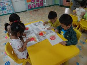 咦?小三班的小朋友拿着棉签在做什么呀?哦!原来他们是在制作奇妙的点彩画呀!本次活动主要目的是引导幼儿尝试用颜料进行点彩,体验点彩画的乐趣。