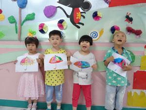 下雨了,我们都打着漂亮的花伞,有红色的、黄色的、彩虹伞,雨天在雨伞的装扮下也显得格外的美丽,今天我们就在美工区设计漂亮的小花伞,大家的想象力都可丰富了,瞧,不一会儿,就设计出了美丽的小花伞。