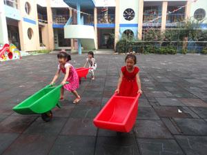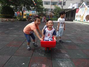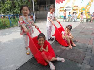 今天老师带着我们在户外进行“送迷路的娃娃回家”游戏,娃娃迷路啦,哭的非常伤心,中一班的小朋友就用小车把娃娃送回家,途中不能让娃娃摔着,要慢慢小心地把娃娃送回家,看!小朋友们都是爱帮助别人的好孩子~~~