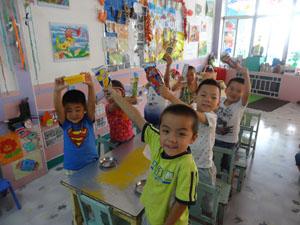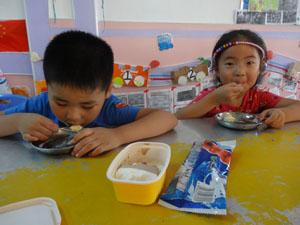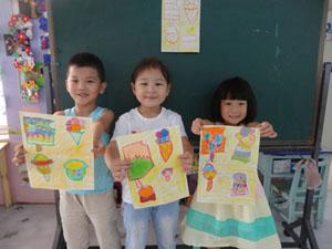 炎热的夏日来到了,我们好想吃一只冰冰凉凉的冰激凌啊,今天老师实现了我们的愿望,我们每人都品尝到了美味的冰激凌,并且我们用绘画和手工的方式表现出来,瞧,我们的作品很棒吧。