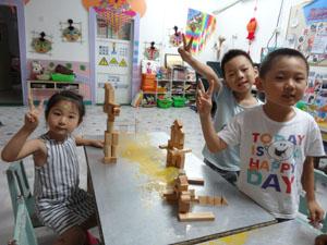 我们最喜欢木玩搭建游戏了,瞧我们有的搭建的像城堡,有的像长龙,有的像火箭,还有的像长城等等,孩子们的想象力太丰富了,你们真棒。