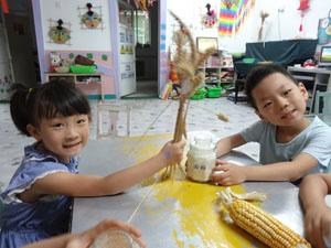 今天老师带领我们进行粮食和农作物的观察,通过了解,知道了面粉是小麦的宝宝、玉米面是玉米的宝宝、香油是芝麻的宝宝等等,它们好神奇,小朋友爱吃的零食都是这些农作物变成的。小朋友们都感到很惊奇。