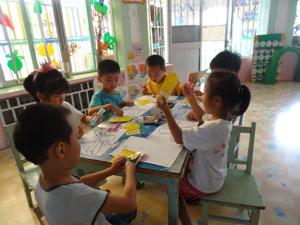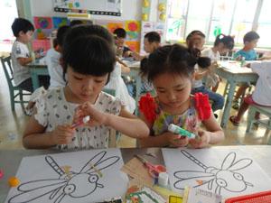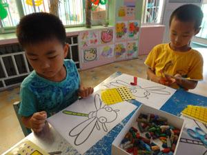 夏天是彩色多变的,夏天是电闪雷鸣,蝉鸣蛙叫的,蜻蜓在小朋友的手里变得栩栩如生中一班的小朋友在制作蜻蜓粘贴呢~用各种废旧材料,用胶棒粘贴到蜻蜓上,蜻蜓就制作好啦~·小朋友真棒!