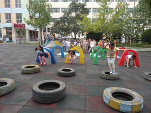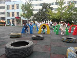 今天老师带我们来到操场,玩一个非常有挑战性的游戏,----《红花献给好老师》这个游戏需要我们大三班的小朋友爬过独木桥,钻过山洞,跳过小石头,摘到了一朵朵鲜花送给亲爱的老师!花里面充满了我们对老师满满的爱。