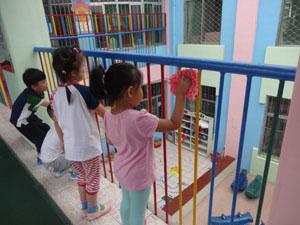 今天大三班的小朋友对班里的清洁工具进行了统计,制作了“清洁工具调查统计表”,了解了各种清洁工具的特征及用途,并分组进行清洁劳动,把班里打扫地干干净净,大家都感到非常高兴,并收获到了劳动后的喜悦!
