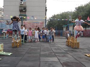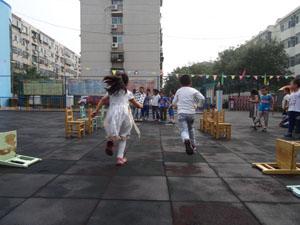 这个游戏叫“翻山越岭”,主要锻炼幼儿跳高的的能力,让幼儿掌握在原地起跳的技巧,再通过比赛,借助小椅子使自己跳的更高,锻炼幼儿双腿正确用力和自我保护能力。