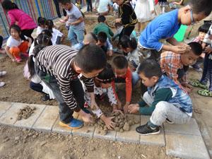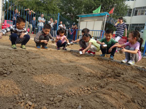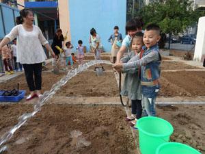 我们班分得了一块菜地,今天老师带领我们来整理,用力翻土,挑出大石块,再为土地浇水,再施肥撒种,小朋友们真是不怕辛苦,做的有模有样。小朋友们都体验了农民伯伯的辛苦,知道了蔬菜、粮食来之不易。