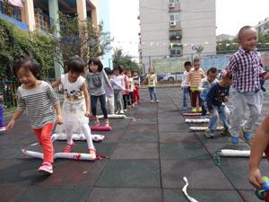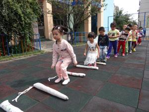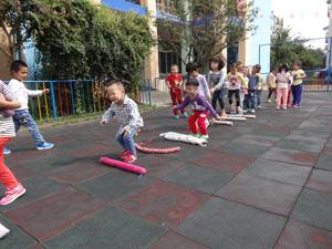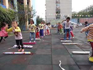 袋鼠宝宝上学校,跳过小河,蹦蹦跳,看看中三班的小朋友多棒,模仿小袋鼠有模有样,采着果子回家喽!有趣的体育游戏,提高了幼儿的双脚起跳的能力。