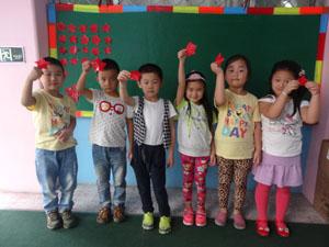红星闪闪放光彩,今天大三班的小朋友自己探索怎样折五角星,边对边,角对角,小朋友们都积极动脑,勇于动手。看,我们的五角星闪闪发光!大家说漂亮不漂亮啊!