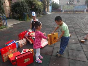中秋节快要到了,今天我们大三班小朋友手提月饼,走过小桥,把月饼送到“爷爷”、“奶奶”手里,送上节日的祝福,并祝大家中秋节快乐!