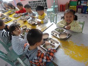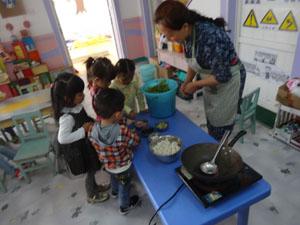 今天我们中三班的小朋友一起收获了小白菜,从翻地、施肥、播种、灌溉到今天一起摘菜,我们懂得了农民伯伯的辛苦,知道了小白菜的丰富营养,马上到中午开饭时间了孔老师来当大厨为我们做了小白菜豆腐炖肉沫,香喷喷的小白菜真是太好吃了!