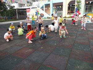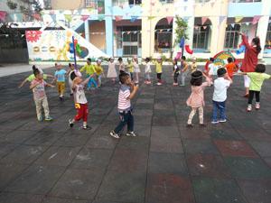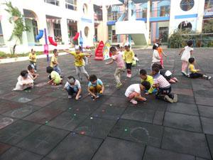 会叫也会跳,没事儿喜欢叽叽喳!走路总是跳,跳,跳跳跳!猜猜看今天我们的户外游戏变成了谁?让我告诉你吧!我们变成了小麻雀,在麻雀妈妈的引导下由圆形分散开来跳着去找食物。左边,右边,你的、我的还有他的不一会儿麻雀妈妈的食物盒里就装满了食物,在妈妈的口令下我们回到集体中。这个游戏不仅仅锻炼了我们的小肌肉的活动,还增强了我们的集体感。