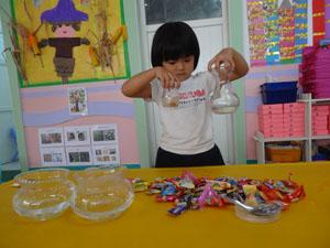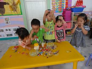 今天游戏活动中我们一起做了一个有趣的实验——糖的变化。看我们有不同类型的糖果,巧克力糖、水果糖、软糖、硬糖、奶糖、白砂糖等等。选择一样自己喜欢的糖,然后放进有冷热不同的器皿中晃一晃摇一摇静待实验结论吧!