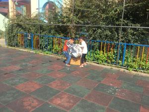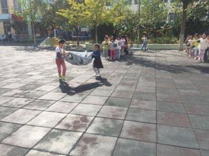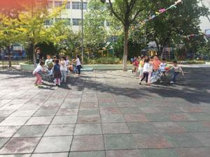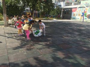 今天大三班的小朋友上了一节户外活动课,把篮球当做小猪,两个好朋友用一块布共同运“小猪”,共同探索“不让球掉到地上”的方法,大家都积极参与游戏。瞧,我们已经把的小猪运到了自己的家啦!