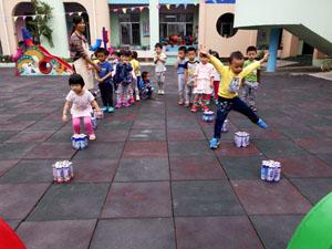 小朋友,你喜欢吃糖吗?今天我们小三班小朋友就要越过重重险关去取糖啦,跳过石头,钻过山洞,迈过小河,钻过隧道,去取我们喜欢的糖块,小朋友,快来给我们加油吧……