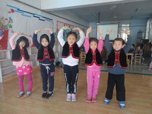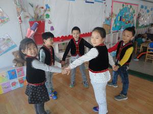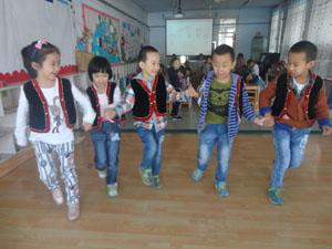 掀起你的盖头来,让我来看看你的脸,啦啦啦~~~大一班的小朋友身穿美丽的新疆服饰挑起了动人的舞蹈。大家围成一个大大的圈,高高兴兴的一起跳着,乐着,欢快极啦~