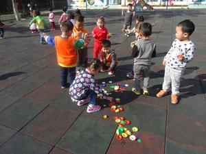 小五班的孩子们变成了可爱的小麻雀,通过飞、跳等动作把自己寻找到的食物送回到自己的家里面,锻炼了孩子们灵敏的反应能力和身体协调能力。