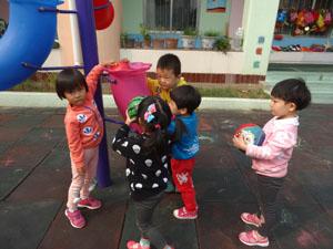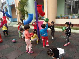 我们是投球小能手,小二班的宝贝们进行投球比赛了。别看我们个子小,投球的本领可是很大的,远远地投、走近了投…..咦!我的球球怎么不见了呢?让我来找一找吧。
