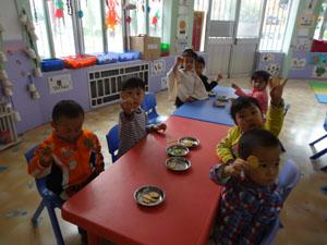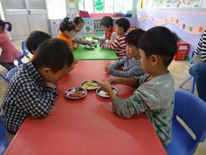 小二班的宝贝们要做夹心饼干喽!看宝贝们跃跃欲试的表情,我们要马上开始了。首先要找到饼干的好朋友,然后轻轻地抹上果酱,最后将好朋友夹在一起。看宝贝们做的多认真啊!吃着自己做的夹心饼干心里甜甜的。。。