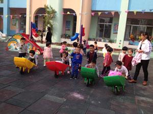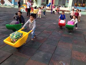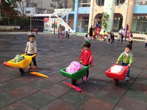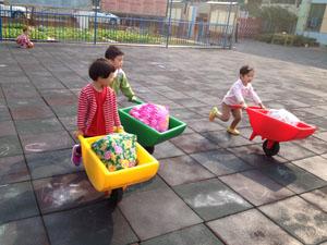 小朋友们你们见过小推车吗?你们会推吗?见过建筑工人叔叔推着小车来运砖,看!我们小三班的小朋友们,帮助动物幼儿园一起搭建图书馆,今天快乐来运砖,看小朋友们不怕困难,圆满的完成了任务,帮助别人快乐自己,好开心地一天啊。