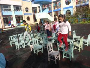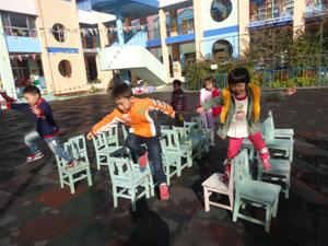 今天大三班的小朋友上了一节体育课,这节课孩子们学会跨障碍跑,能利用椅子在上面进行走、跑、骑大马、跳下,跨越等动作,大家都勇于参与游戏竞争,相互交流学习。瞧,大家看我们是不是像小鸟一样飞起来了呀?