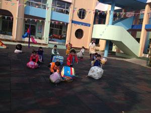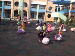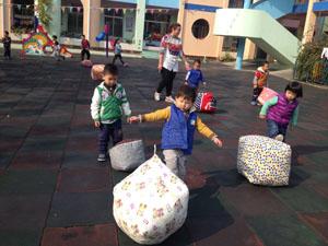 大沙包,真好玩,又当沙发又当床,今天我们做游戏,沙发变成大石头,小朋友们来抬它,变变变呀变,变成一个小足球,踢来踢去跑的快,沙包宝贝开心跳,欢迎大家一起来,看看小三班的小朋友们棒不棒?