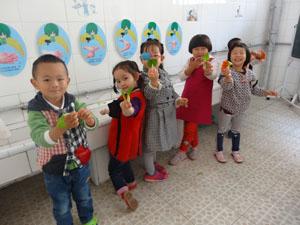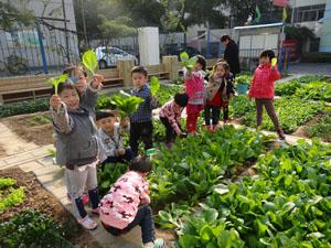 今天,中二班的小朋友们可开心了!因为自己种的乌塌菜经过我们辛勤的劳动之后终于长大了!小朋友自己到菜园拔菜,和老师一起择菜,洗菜。最后,老师炒菜。嗯嗯嗯……纯绿色无污染的菜吃起来就是香呀!小朋友请你也快来尝一尝吧!